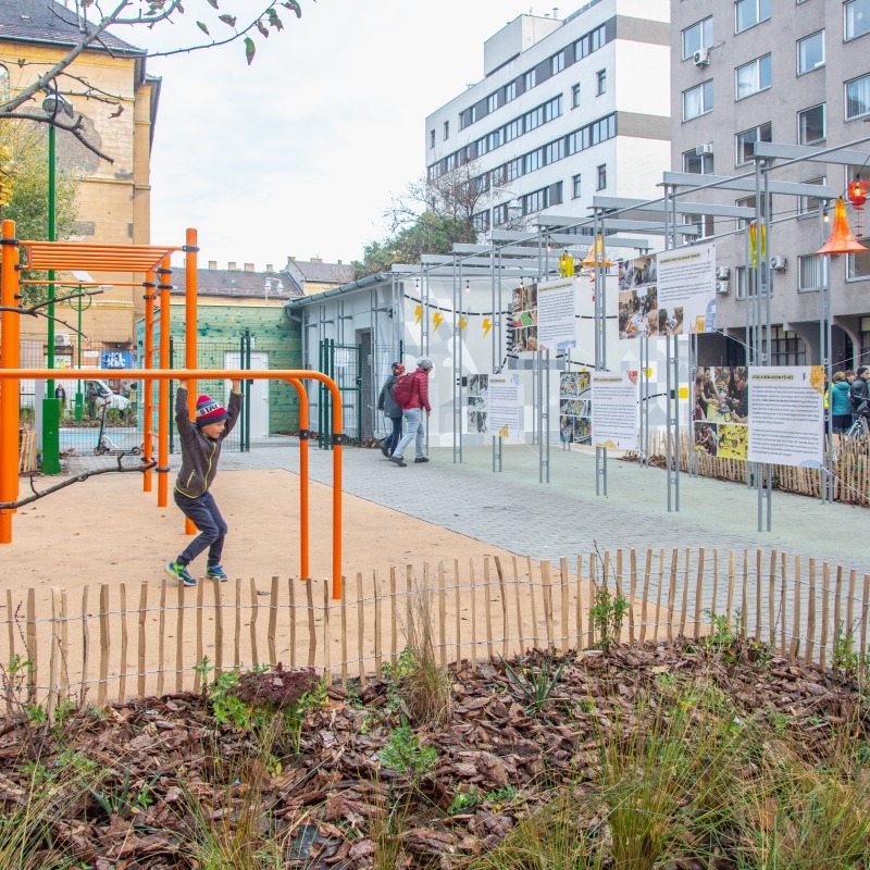 Zöld szigetek és facsoportok, árnyékos pihenőhelyek, esőkert és vízáteresztő burkolatok – mitől lesz klímabarát egy köztér? A megújított Déri Miksa utcában a gyakorlatban is megnézhetjük.